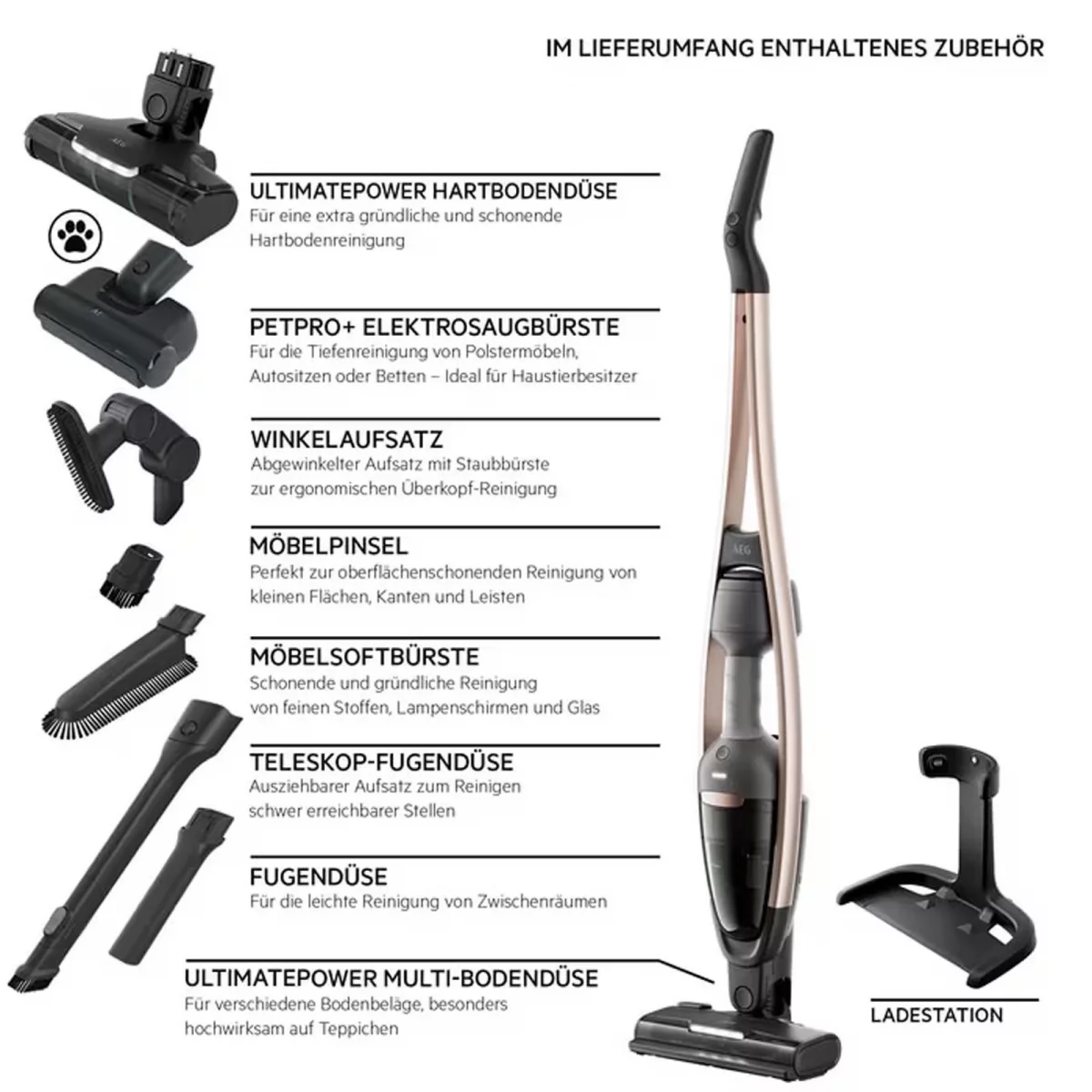 - Inklusive Kombi-, Parkett- & Polsterdüse